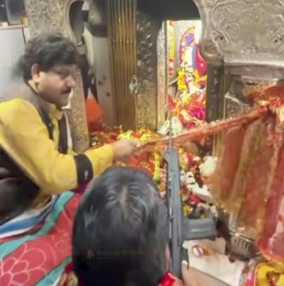मैहर: पर्वत शिखर पर स्थित शक्तिपीठ मां शारदा देवी के धाम में समय-समय पर पूजा अर्चना को लेकर भक्तों के साथ भेदभाव के आरोप लगते रहे हैं। यहां आम और खास के लिए अलग नियम हैं जिसकी तस्वीर सामने भी कई बार आती है। बीते दिनों मंदिर के गर्भ ग्रह में वीआईपी और बाहुबलियों के सामने नियम और कानून कैसे बौने साबित हो गये। इसकी तस्वीर अब सोशल मीडिया में वायरल हो रही है। दरअसल यहां उत्तर प्रदेश के कुंडा से बाहुबली विधायक और जनसत्ता दल के राष्ट्रीय अध्यक्ष रघुराज प्रताप सिंह उर्फ राजा भैया आए थे। उन्होंने प्रतिबंध के बावजूद मंदिर के गर्भगृह में न केवल राइफल के साथ प्रवेश किया, बल्कि बाकायदा शस्त्र पूजा भी की। हैरानी की बात यह है कि मंदिर के प्रवेश द्वार पर स्पष्ट लिखा है कि शस्त्र लेकर जाना प्रतिबंधित है फिर भी पुलिस और सुरक्षा गार्ड मूकदर्शक बने रहे। इतना ही नहीं, पुजारी ने राइफल को रोकने के बजाए उस पर चुनरी बांधी और पूजा संपन्न कराई।