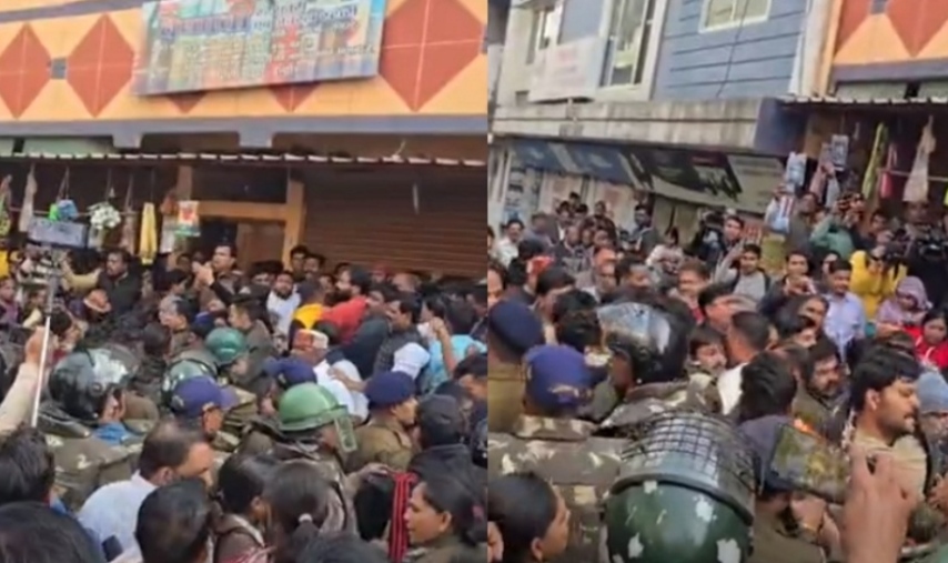 कांग्रेस नेताओं के पहुंचने से पहले ही भाजपा कार्यकर्ता भारी संख्या में भागीरथपुरा में जमा हो गए थे। भाजपा कार्यकर्ताओं ने कांग्रेस के खिलाफ जमकर नारेबाजी की और उन्हें क्षेत्र में घुसने से रोकने की कोशिश की। माहौल तब और तनावपूर्ण हो गया, जब कुछ महिला कार्यकर्ताओं ने कांग्रेस नेताओं की ओर चूड़ियां फेंकी और काले झंडे दिखाए। भागीरथपुरा में पुलिस स्थिति संभालने की कोशिश कर रही है। दोनों पार्टियों के कार्यकर्ता नारेबाजी के साथ आपस में धक्कामुक्की भी कर रहे हैं।